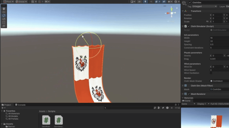 This is a project where I explored compute shaders in unity, I used them to generate a flag mesh in runtime, using gravity and wind